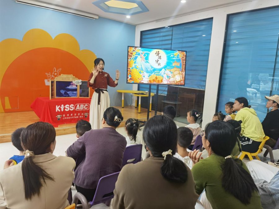妇女儿童之家双语图书馆为孩子们精心策划了一场深度的中秋文化之旅。通过讲述《吴刚伐桂》的经典故事、解读中秋节传统习俗、共唱温暖的中国童谣等方式,引导孩子们深入了解中秋节的文化内涵。孩子们还亲手参与了月饼制作,并在“童谣游灯会”环节中,提着自己制作的花灯,沉浸式体验了人月两团圆的美好意境。