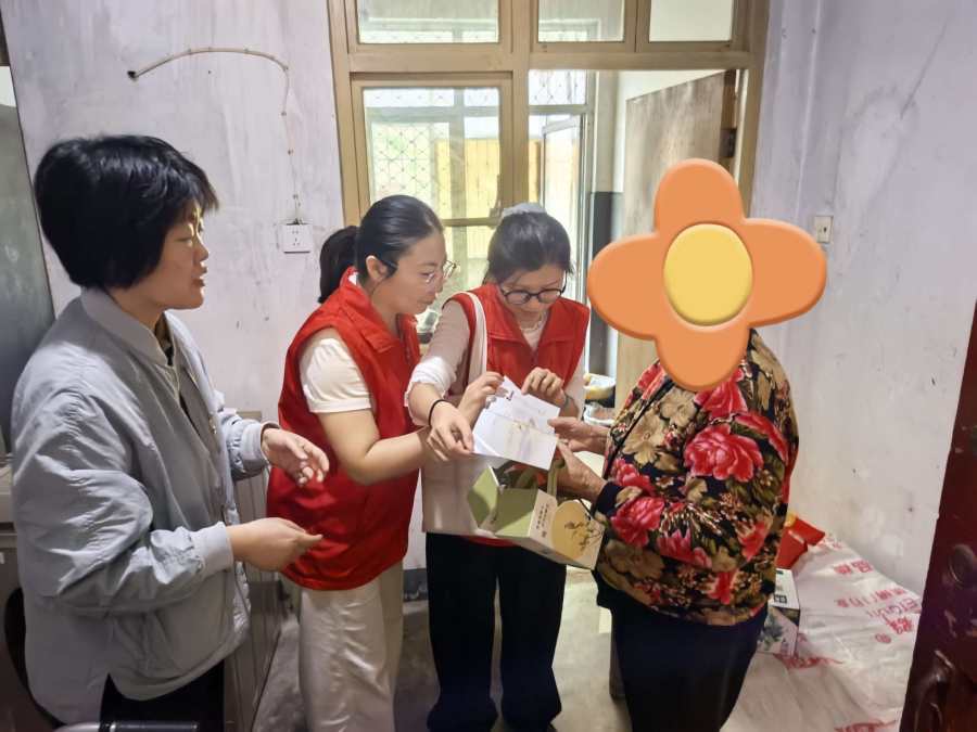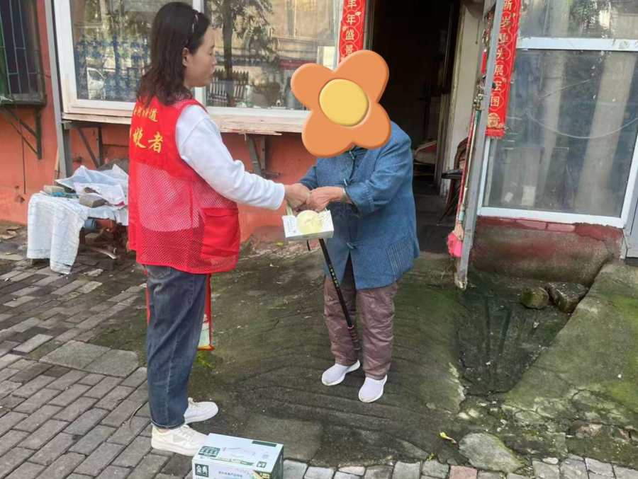 活动伊始,一场充满温情的冰皮月饼制作环节在社区活动中心拉开帷幕。党员志愿者们早早来到现场,洗干净双手、穿戴好一次性手套后,迅速投入到月饼制作中,大家分工明确、默契配合,材料很快在志愿者们的巧手下变成一个个包含心意的甜蜜的月饼。月饼制作完成后,社工与党员志愿者们带着精心准备的“慰问大礼包”——牛奶、大米以及刚做好的冰皮月饼,前往社区困难群众家中。每到一户,大家都先送上双节的祝福,随后详细询问他们的身体状况、生活需求以及当前面临的困难。同时,社工还向他们发放了社会救助政策宣传册,告知他们如果在生活中遇到困难,或有政策咨询需求,随时可以联系社区或社工寻求帮助。在低保对象李阿姨家中,李阿姨接过慰问品,紧紧握住社工的手,眼眶微微湿润:“真是太感谢你们了,每到过节都想着我们,政府和社区对我们的关心,我们都记在心里!”朴实的话语里,满是对这份温暖的感动。