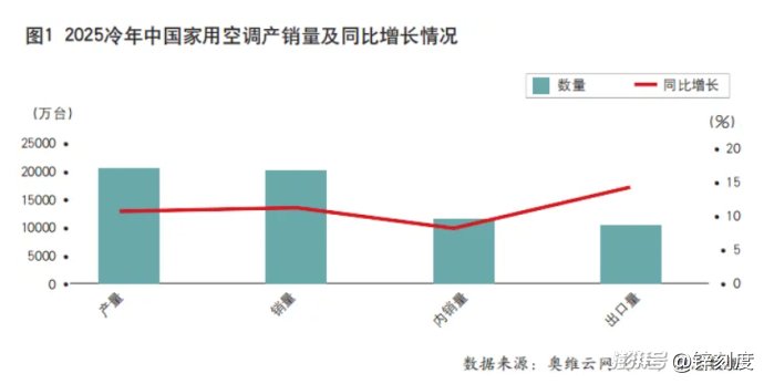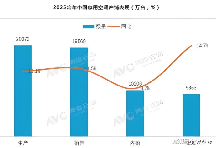 刚刚结束的2025冷年(即2024年9月至2025年8月),得益于国补政策、高温等客观环境,中国空调市场实现了产销双增的狂欢——2亿台产量、1.96亿台销量,内销与出口均实现稳健增长。