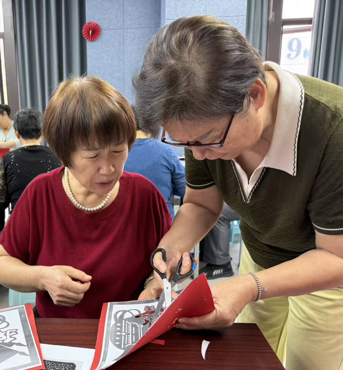 金秋送爽,喜迎华诞。9月29日,郑州市惠济区新城街道文运社区党支部,在社区二楼红色演播厅开展“剪纸映红 共贺华诞”迎国庆非遗剪纸活动,社区居民以红纸为媒、以剪刀为笔,将红色故事融入剪纸创作,共度别样国庆。