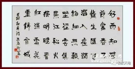 三是在艺术的品味上,以“趣”揽之。中国书画艺术素来就有“意趣”一说。所谓“意”,是指作者的审美价值取向和艺术境界,其间即含有时代精神的“大我”情怀,又含有艺术家个人的理想和追求;所谓“趣”,乃是指由艺术家个人阅历、生活氛围和性格气质所决定的情趣,是构成书法家艺术个性特征的重要因素。宋人张琰说:“词以意趣为主,不要蹈袭前人语意。”韩印军生活在“翰逸神飞”的当代草圣于右任和篆书大家刘自椟的故里,接三原人文氤氲“地气”,得秦山渭水精华,铸成他追求静雅、敦厚、高朴、沉稳的性格旨趣,并在自己的书法作品中得以“发于内而行诸外”的表现。欣赏他的作品《水自石边流出冷》,厚重中隐含飘逸、刚锋中亦露温婉、大气中不失谨严。不难发现,他笔下飞动的线条,所承载的正是他个人意趣中仁山智水的统一,性格中刚与柔的相济。而一幅“厚德载物”,则把作者宁静、淡泊、平实的人生态跃然纸上。我想,这正是他的作品继承传统而不拘泥于传统;反映生活而又高于生活;博采众长而超越自我的重要原因。