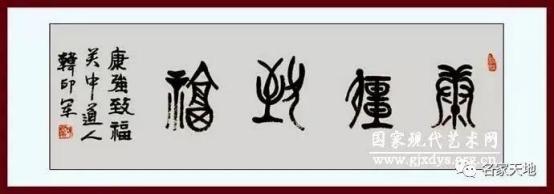 我这样评价他的大篆作品,并非说他的成就可以与当代书坛大家相提并论,也不是说他的作品没有进一步提升的空间。但我认为,“书成一家方为高”,他已经走出了一条属于自己的道路。只要沿着这一条路子走下去,辉煌的前程必然属于他……书法界许多人士高度评价了韩印军,认为他从中国民间艺术中汲取精髓,并转化为体现现代审美理念的艺术作品,是当代中国具有极高艺术造诣的艺术家。