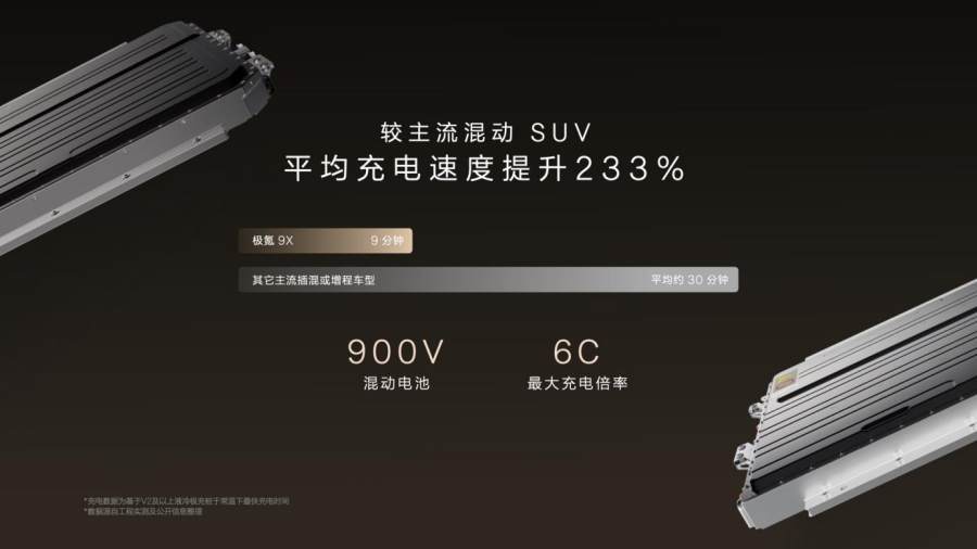 极氪9X全系采用900V大电池方案,支持6C超快充