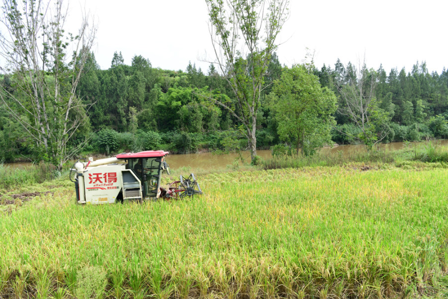 当天,浮山村股份经济合作联合社还组织联合收割机为浮山村6组村民收割水稻。笔者在现场看到,收割机穿梭于金黄稻浪间,一株株稻穗被齐刷刷地尽收“囊”中,粉碎的稻秆同步还田。伴随着收割机靠近路边,眨眼间便完成装袋转运。“今天,共为12户村民收割了16亩水稻,既节省了劳力,提高了效率,又增加集体经济收入1600元。”浮山村党支部书记杨检介绍。