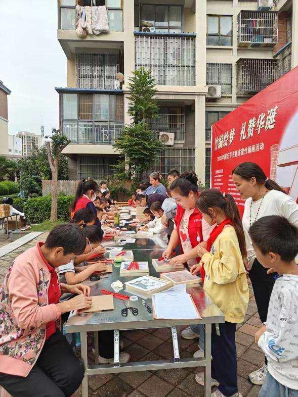 为庆祝中华人民共和国成立76周年,弘扬爱国主义精神,传承中华优秀非遗文化,白沙镇育才社区联合郑东新区政法委社会工作部,于2025年9月29日下午在宽豪斯小区广场举办“竹编绘梦 礼赞华诞”国庆主题活动。活动通过制作国庆主题非遗竹编画,营造了浓厚的节日氛围。