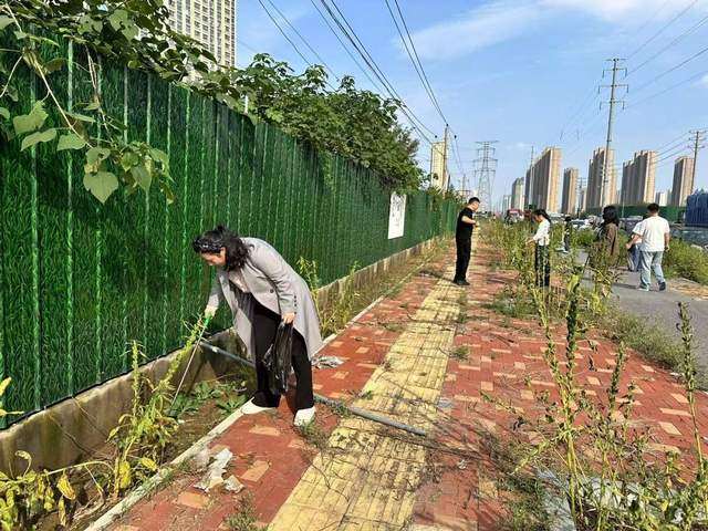 活动伊始,来自索河街道13个机关部门、天悦湾社区、楚楼村、城关村的90余名党员干部,手持铁锹、扫把、垃圾袋等清洁工具,齐聚龙港路西段,对长约300余米的道路两侧绿化带、廊道及花坛进行全面清理。大家重点清除了