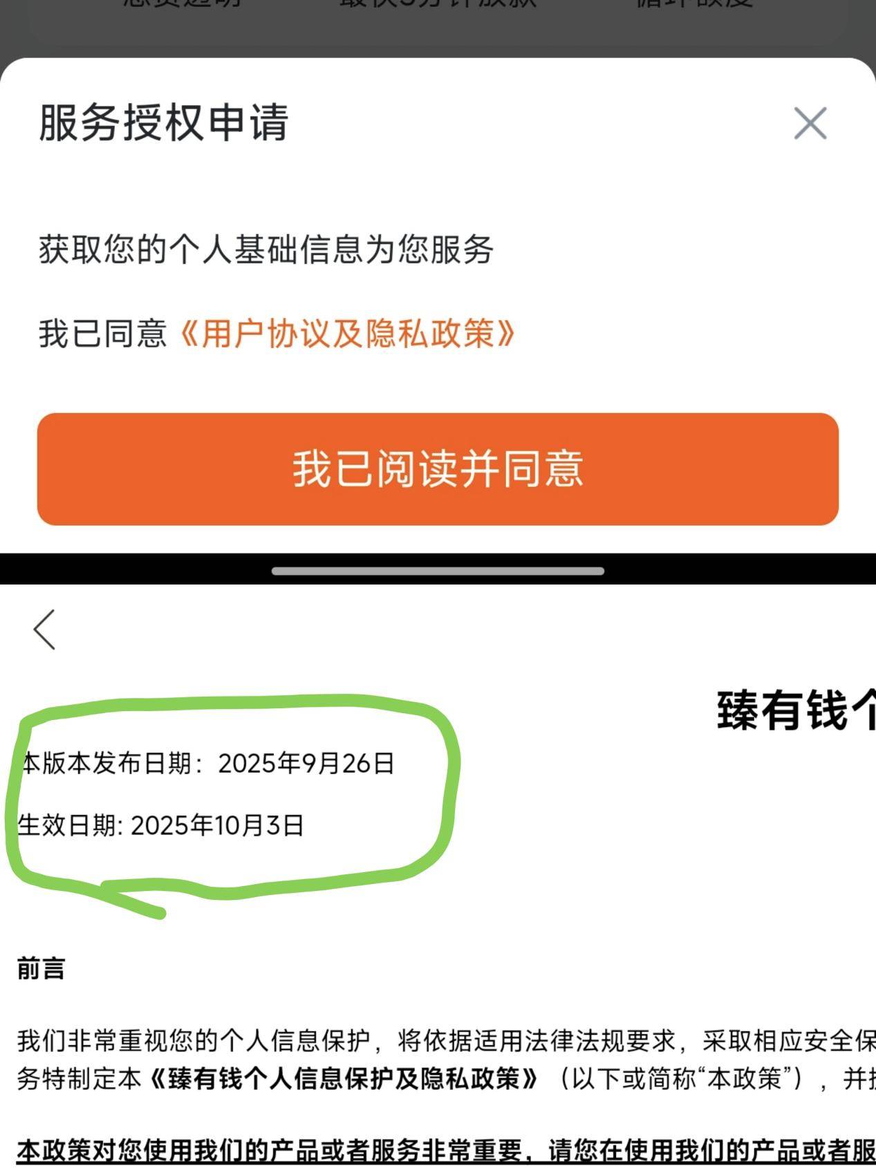 笔者注意到,这份协议的发布日期为2025年9月26日,但生效日期为2025年10月3日。虽然笔者无法得知这份协议是何时上线,但笔者借款的时间为9月29日,比生效时间早了4天。这份协议可谓妥妥的“早产协议”。