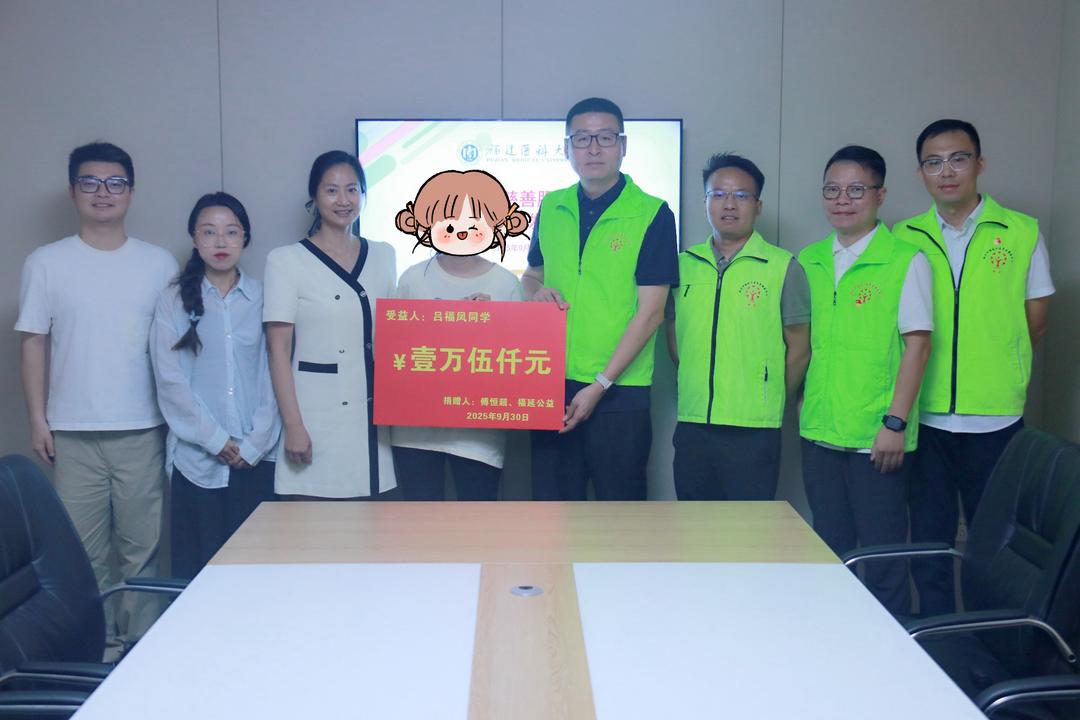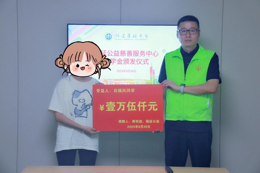 9月30日上午,福建医科大学校友之家内暖意融融。福州市福延公益慈善服务中心荣誉理事长、恒杰力城市管理(福建)集团有限公司董事长傅恒超、理事长龙波、监事长黄峰一行,将一笔15000元的助学金郑重交到临床医学专业大一新生吕同学手中。这笔带着温度的资助,不仅是福延公益“福蕾”奖助学项目的又一次落地,更是为这个身处困境却志在从医的女孩,点亮了继续前行的希望之光。