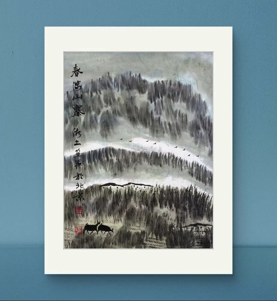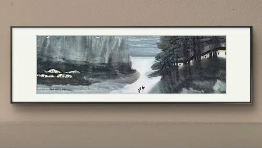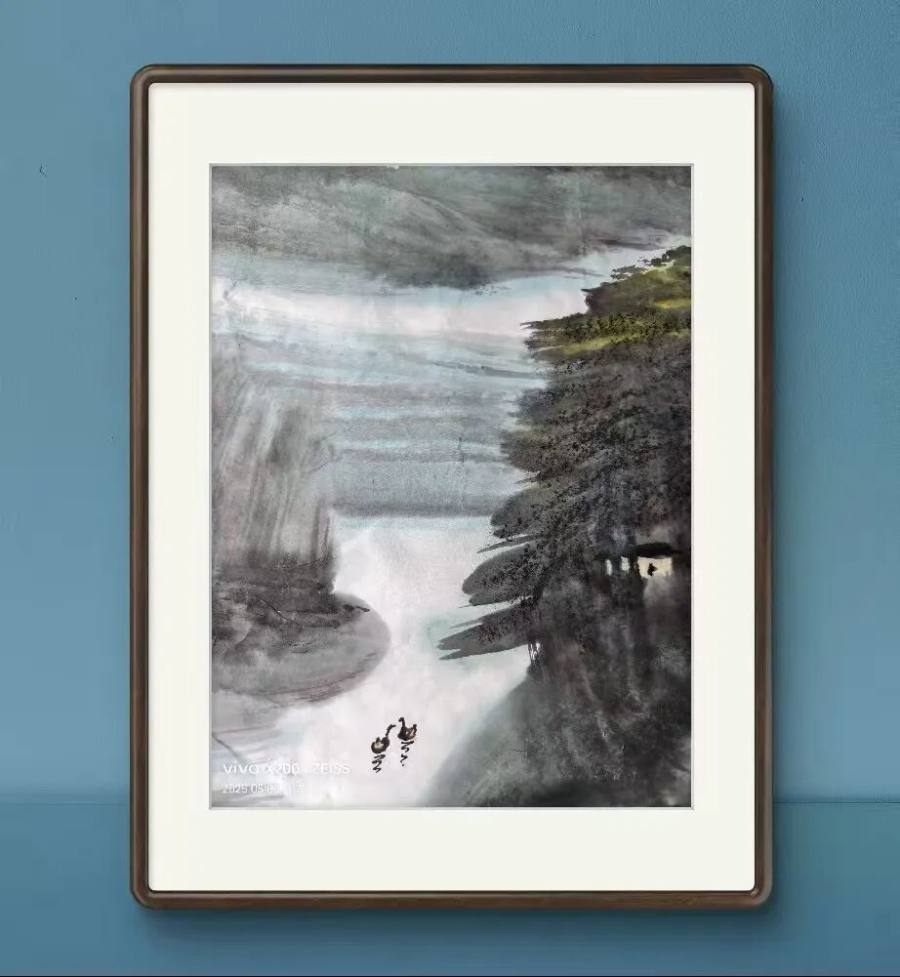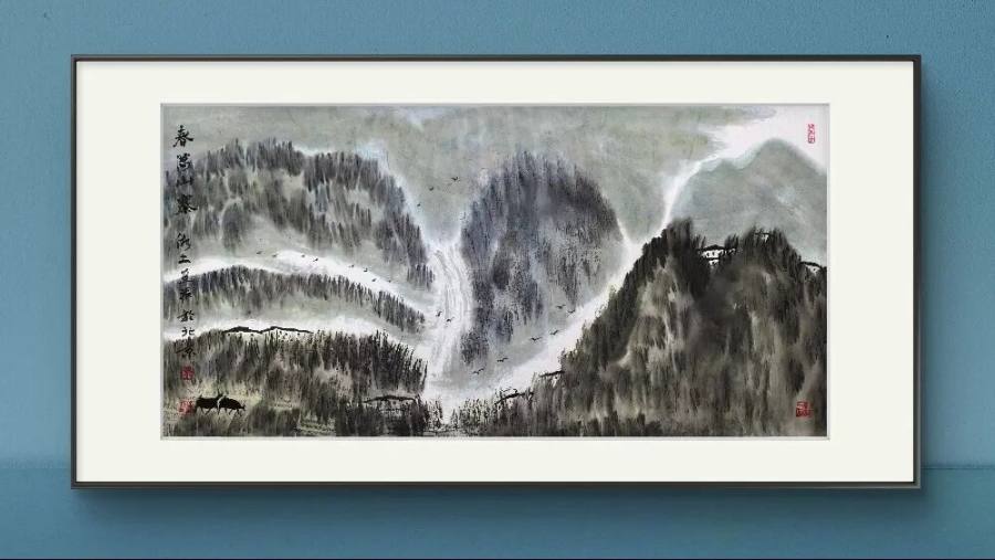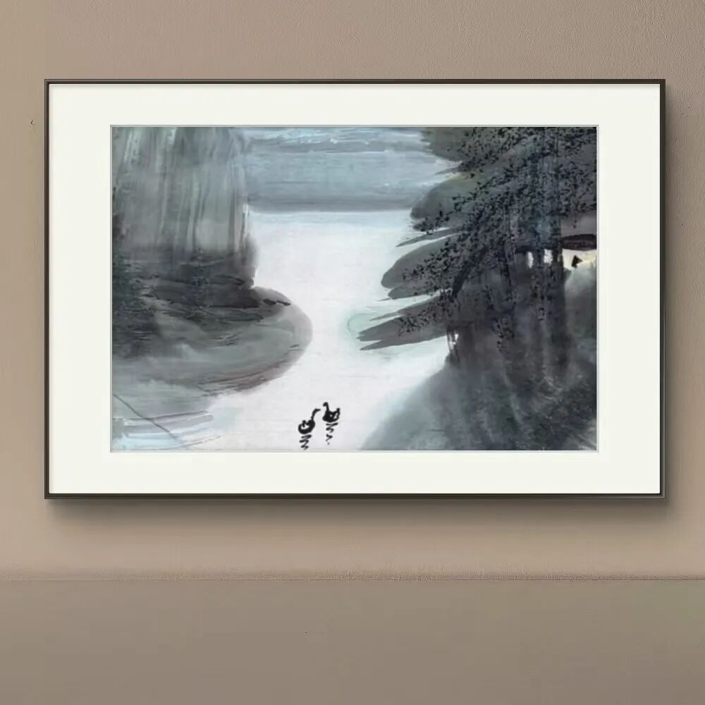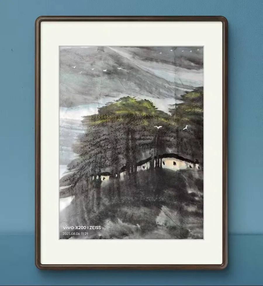在余和平先生的山水画卷中,湘楚大地的灵韵是被赋予了诗性的重生。其笔墨深得南宗山水之精髓,自能于简淡中见浑厚,亦能在虚实处藏玄机。画面天地暝晦时,墨色如烟云吞吐,以积墨法层层晕染,晦明变幻间似可感受到湿润雾气;林麓蓊郁处,笔墨则裹挟着苍拙之气,始于混沌中隐现出松木勃发。包括画面层次的构筑——危峰叠嶂必以焦墨立骨,复以淡赭轻皴,待数遍积染后,必是上有巉岩欲坠飘云气,下有深涧含幽纳岚光。至于水田小景,先生也是常显留白之妙谛。素绢上,仅以数笔淡墨勾绘阡陌,薄雾横拖野汀,远岫隐现云根,大片虚空处似有晨雾流转。而这种"无画处皆成妙境"的写意营造,也恰是与“烟消一点一尘埃”的禅境相暗合。诗情逸气,足可聊以自娱耳!