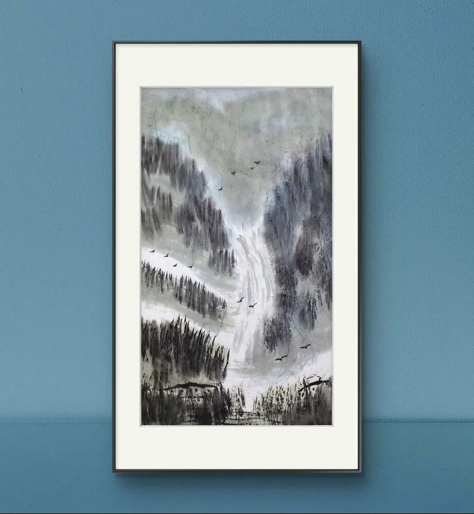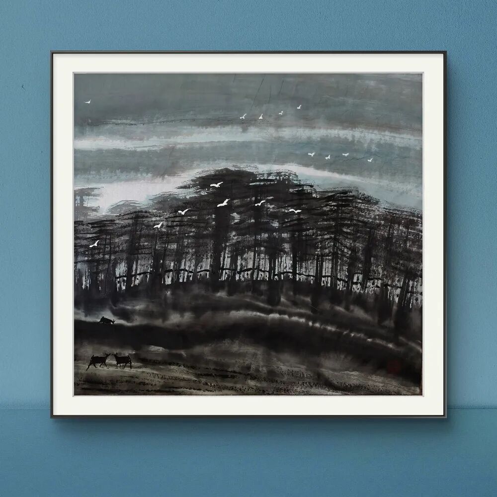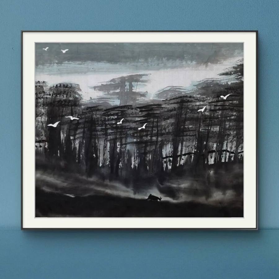 可以说,余和平先生画山水,是有着自己明确的艺术内涵定位,在这一片黑白山水中,他蕴含的是清商之气,营构的是灏素之容,墨要糙擦浑厚,笔要雄健活泼。所以欣赏他的山水画作,很难不会被其画中境界所感染,可令人心起停骖待晚之思。铅华退尽,胸涤尘埃,远视苍苍,近视茫茫,实乃操笔如在深山,居处如同野壑也。现如今的余和平先生正值创作盛期,能达到这种山水境界,也着实是值得敬佩的。在此,我们也衷心祝愿他能够继续保持此心,在山水中回味,在笔墨中归真,纸上生情,艺树常青。