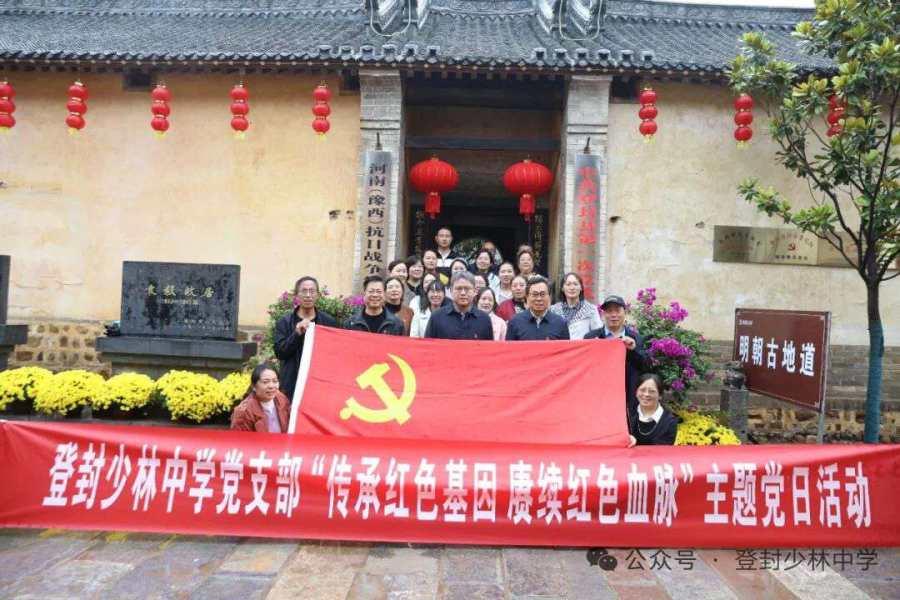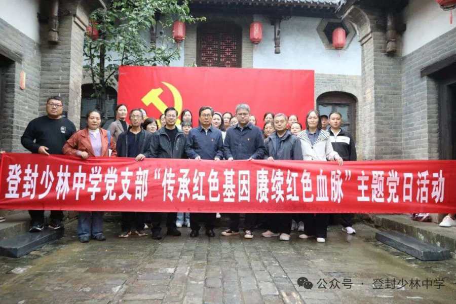 2025年9月28日,登封少林中学党支部组织学校35名党员,前往大金店镇袁桥村登封一大旧址,开展“传承红色基因,赓续红色血脉”主题党日活动,以此特殊方式汲取奋进力量,为祖国母亲庆生。