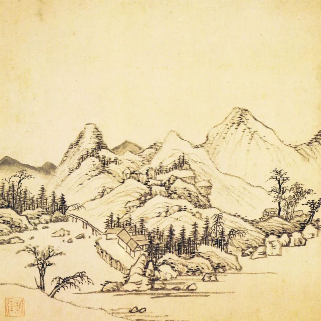 构局以平远开境,层面递叠,节奏舒徐。笔法收敛,不事繁缛;线骨坚实,墨华含润。村落与山体互为倚托,溪湾与沙屿相为唱和;观者随道而行,心随水转,目与云游。此幅清雅端整,古气在骨,山川寂淡,风神自长。