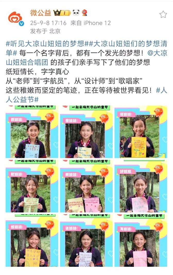 几个月后,微博“人人公益节”期间,跨域博主@花叔 与微博公益合伙人@帽帽moer 走进四川大凉山普格县大槽乡中心小学,陪伴孩子们走过上学山路,聆听妞妞们心底梦想。