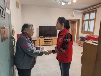 月饼冷却包装后,社区工作人员与志愿者分成多组送祝福。区人大代表陆影楠、赵娜主动加入队伍,与志愿者一同前往高龄独居老人家中,送上月饼的同时,关切询问老人饮食起居与健康状况,叮嘱他们秋季注意保暖和用电安全,让老人感受家人般的温暖。另一组则将月饼送到社区民警、周边快递员、外卖骑手手中,感谢他们的辛勤服务,让新业态工作者也能收获节日关怀。“没想到过节能收到社区的月饼,心里特别暖!”快递小哥接过月饼时满是惊喜。