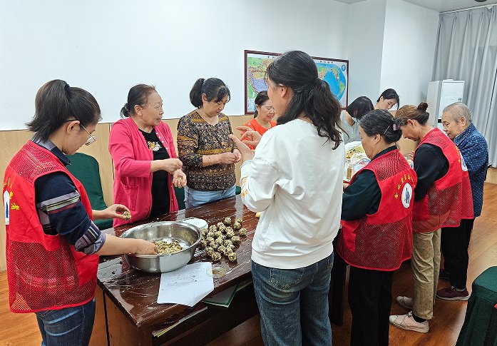 活动现场,志愿者与工作人员围坐在一起,分工协作:揉面团、分馅料、压模具,默契配合间,一个个造型精致的月饼生胚逐渐成型。待生胚制作完成后,大家将其送往河南省政协食堂,利用食堂专业烤箱进行烤制。不一会儿,金黄饱满的月饼带着浓郁香气出炉,刚出炉的月饼外皮酥脆、内馅香甜,满是中秋的味道。制作过程中,大家一边忙碌,一边交流中秋习俗,欢声笑语中满是团圆的氛围,每一个环节都融入了对邻里的牵挂。