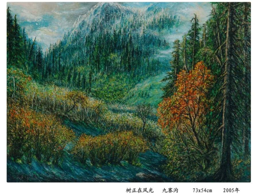 美学体系开创者:作为中国湘西北美学的奠基人,其“秘境美学”风格(如《金秋急流》)通过写实与写意结合,打破传统油画范式,成为东方油画本土化的里程碑。