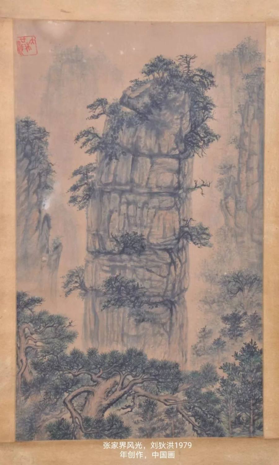 刘狄洪的《张家界风光》(1979)这幅作品创作于中国改革开放初期,作品暗合"伤痕美术"思潮却选择山水题材的深层动机。《张家界风光》以山水为茧,在在20世纪70年代末完成了一场文化破局。当“伤痕美术”聚焦于具象的社会创伤时,刘狄洪(曾用名刘杕洪,又名刘秋洪)先生却潜入传统山水程式,以看似保守的题材暗度文化复苏的激流——这既是规避意识形态风险的策略性迂回,更是对民族文化基因的深层修复。画中嶙峋山体以焦墨渴笔重构北宋皴法,枯涩的笔触在宣纸上留下如地质断层般的裂痕,既隐喻了文化的断裂,又以皴擦的物理性震颤唤醒沉睡的笔墨记忆。这种对传统的“破坏性激活”恰似蝉蜕:在看似完整的山水躯壳内部,毛笔的提按顿挫已挣脱程式枷锁,通过笔墨的物质性实验将文人画的抒情系统重构为文化再生的能量矩阵——当裂变的皴法肌理与新时代的光谱共振,千年山水传统终在1979年的历史临界点完成破茧,成为艺术复苏的隐秘宣言。