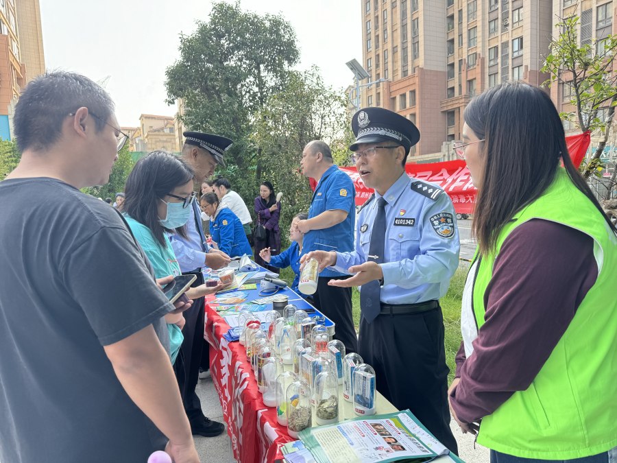 “遇到有人吸毒该怎么办?”“发现涉毒线索要向哪个部门举报?”在天河社区中秋游园会活动现场,禁毒民警正以通俗易懂的语言,对居民们的提问逐一耐心解答。