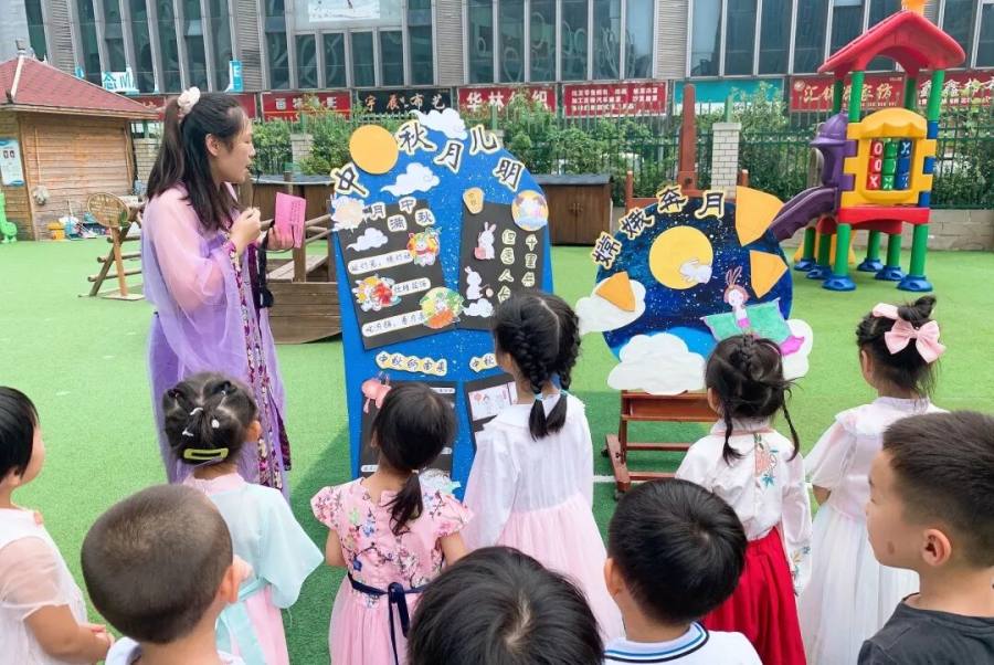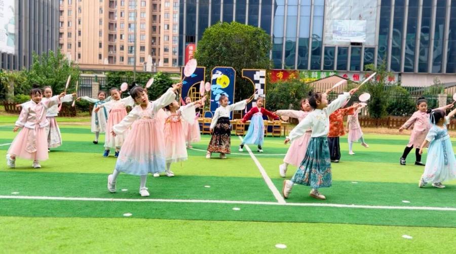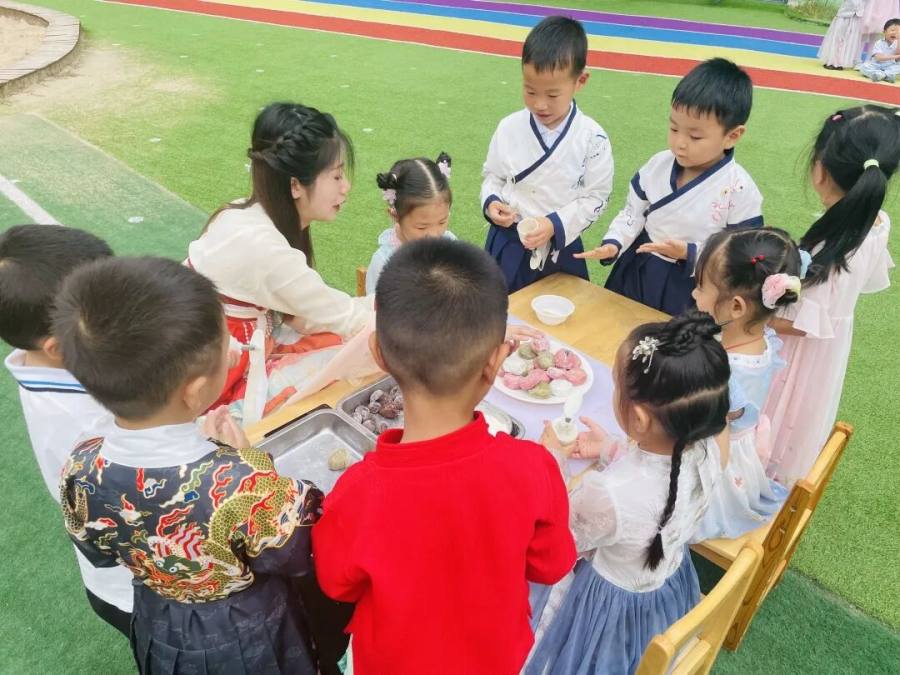 “明月几时有,把酒问青天……”活动开始前,身着汉服的小朋友跟随音乐翩翩起舞,稚嫩的童声与灵动的动作交织成一片欢乐的海洋。随后孩子们三五成群,结伴参与各种活动,现场氛围热闹温馨。