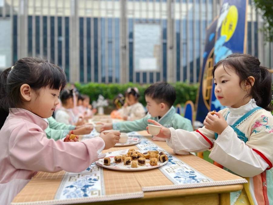现场还设置了休息区,孩子们在休息区品月饼、饮桂花酒……这些寓教于乐的活动不仅让孩子们体验到中秋文化的魅力,更让中华优秀传统文化在幼小的心灵中生根发芽。