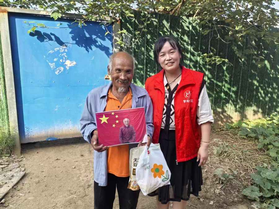 带着这份“特殊礼物”与精心准备的中秋慰问品,社工逐一探访了合影特困老人家庭。当老人们从我们手中接过装帧清晰地合影时,喜悦与感动溢于言表。手捧与国旗的珍贵合影,年近八旬的杨爷爷动情地说:“这份礼物太珍贵了,比什么都强,我得好好保存!”