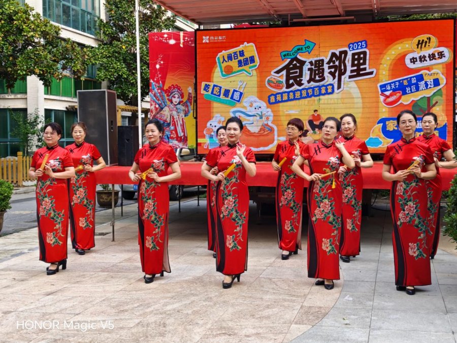 活动在精彩的文艺表演中拉开帷幕。社区模特队的登场成为本次活动一大亮点,队员们身着精美服饰,步伐优雅自信,在舞台上展现出别样风采,赢得现场阵阵喝彩。在居民个人演唱环节,几位“民间歌手”一展歌喉,用美妙的歌声传递着节日的喜悦。随后,舞狮子表演震撼上演,灵动的狮子在锣鼓声中翻腾跳跃,寓意吉祥,将现场气氛推向高潮。多彩多样的节目轮番上演,进一步展现了社区居民积极向上的精神风貌和丰富的文化才艺。文艺表演结束后,温馨的百家宴正式开始。居民们围坐一堂,共享丰盛美食,彼此交流谈心,欢声笑语在社区中回荡,邻里情谊在温馨氛围中不断升温。