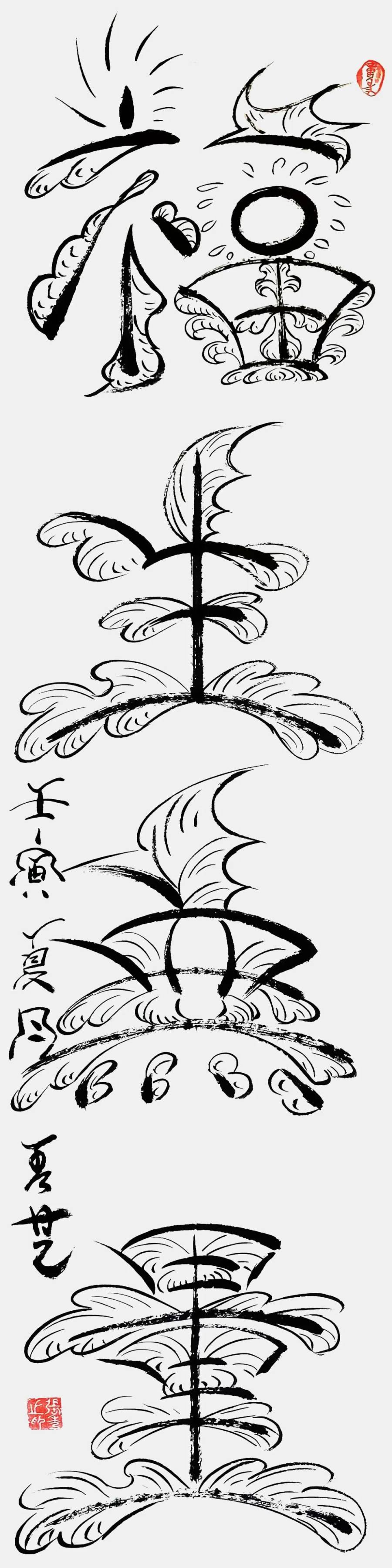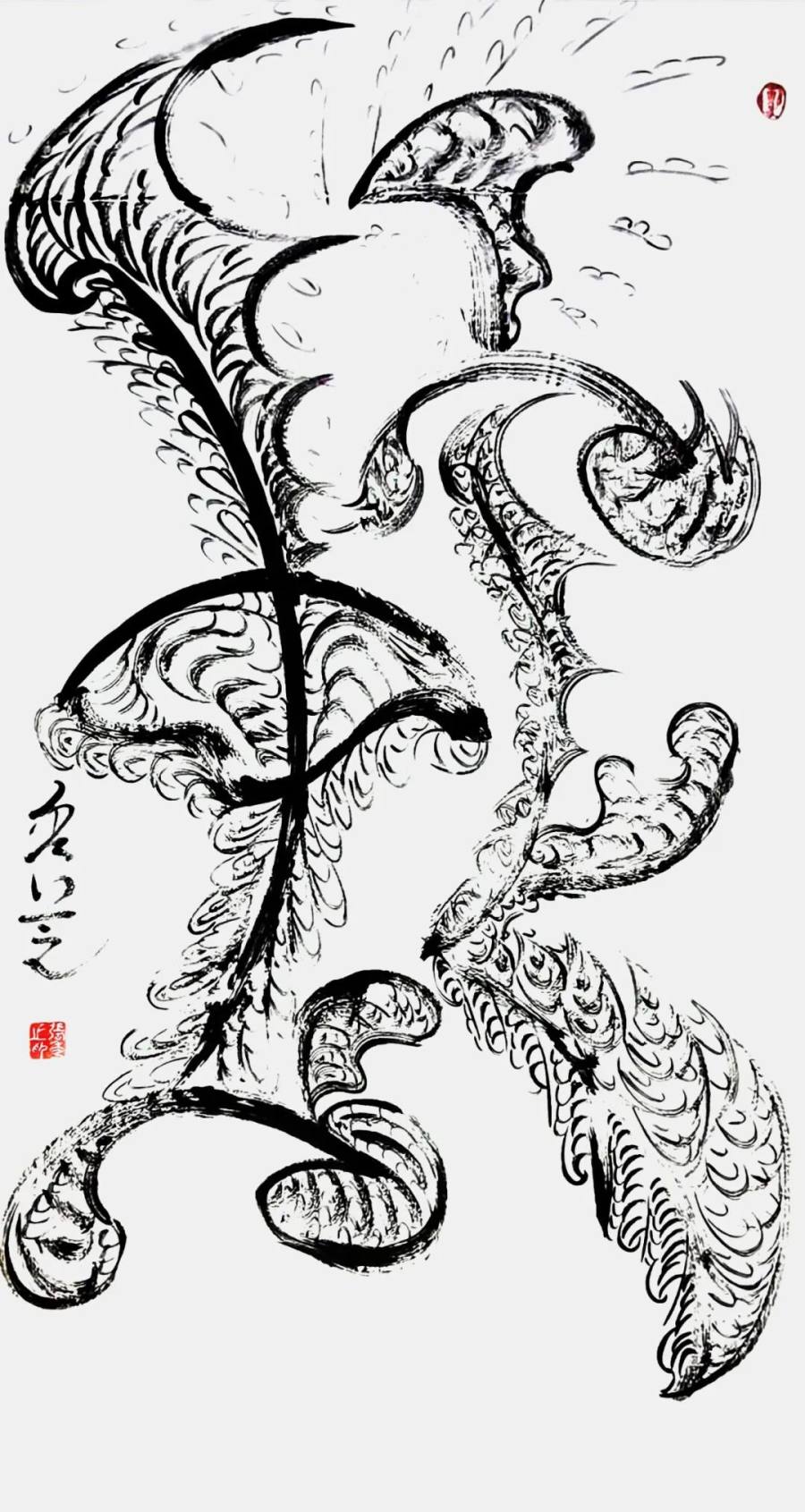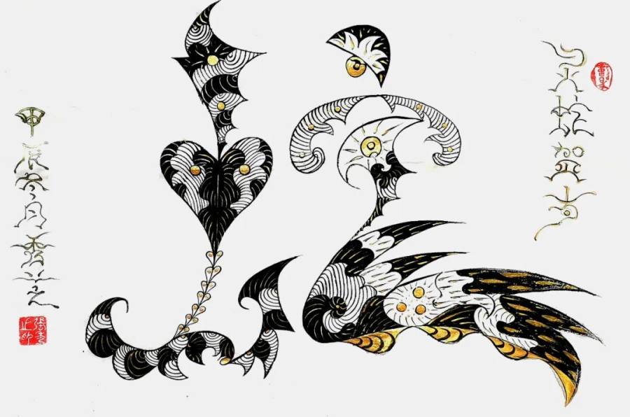 张秀芝女士独创的意象书法,成为当代美术的文化品牌。她以画意字,因字结画,画中有字,字中有画,形成了前所未有的独特意象书法全新形态。在她的作品里汉字不再是简单的文字符号,而是富有生命力的意象主体。她巧妙地将笔画与图形融合,让每个字都在讲述与字意相关、与人生相联、与世界同生、也智慧同行的文化故事,福字会将其笔画化作飘逸的彩带,寓意着福气如彩带般环绕,龙字则可能被描绘成蜿蜒巍峨虬龙在天,象征中华腾飞如山川壮观!这种创新的表现形式,不仅是对传统书法的传承与发展,也是对新书法艺术边界的探索成果。正如道家所言道可道,非常道;名可名,非常名。张秀芝女士突破了常规的束缚,创造出了属于自己的艺术之道,不必言说,大观极妙!