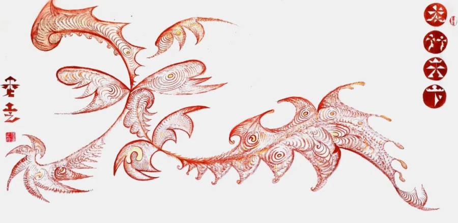 意象书法以线条的离散聚合重构空间能量,成为太极阴阳相生相克的镜像,恣意挥洒的笔触暗含五行生克真理,块面体的墨色堆叠为山川涌动,又谓星云流转,令观者恍若置身天地初开的混沌之境。这种突破传统框架却不离文化根脉的书画探索,令其作品在国家级艺术展中屡获殊荣,被权威典籍收录为时代典范。
