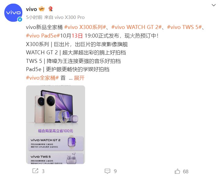 值得一提的是,此时,距离vivo计划于10月13日举行的X300系列发布会仅剩不到三周时间。vivo产品经理韩伯啸介绍,vivo X300 Pro正面挑战苹果,更胜友商Ultra机型的视频能力,安卓视频之王不遑多让。