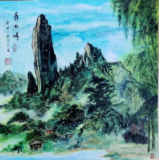 2023 年 8 月 12 日纽约时代广场海外展播赵志锡创作的中国画《瓯水青峰呤诗意》等八幅作品入选"走向世界艺术家″纽约时代广场作品展播。