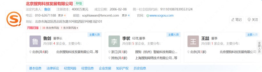 公开信息显示,鲁剑在2022年9月起任北京搜狗科技发展有限公司董事,接任该公司法定代表人及董事长职务。其担任腾讯输入法部负责人期间,主导发布《众声无障碍输入白皮书》,推动输入法在金融、车载终端、VR等领域的行业解决方案研发。