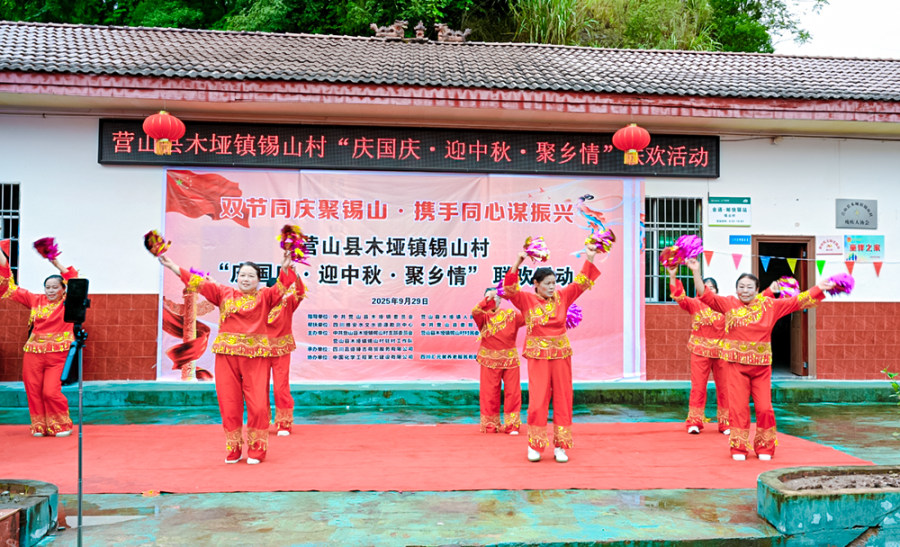 9月29日下午,四川省南充市营山县木垭镇锡山村村委会广场彩旗飘飘、热闹非凡。五星红旗迎风招展,彩色灯笼点缀其间,300余位村民、帮扶干部与爱心人士齐聚,共赴“庆国庆・迎中秋・聚乡情”联欢盛会,在欢声笑语中绘就乡村振兴的幸福图景。