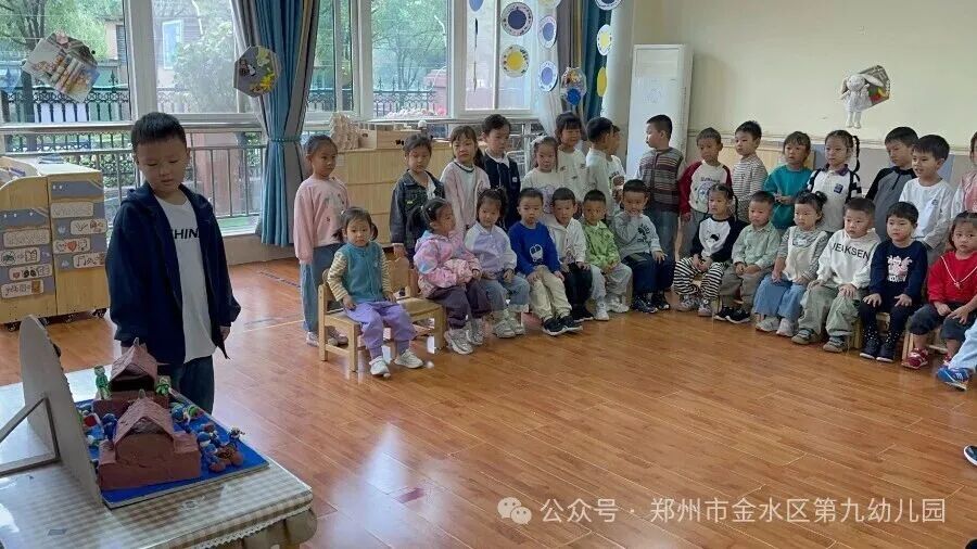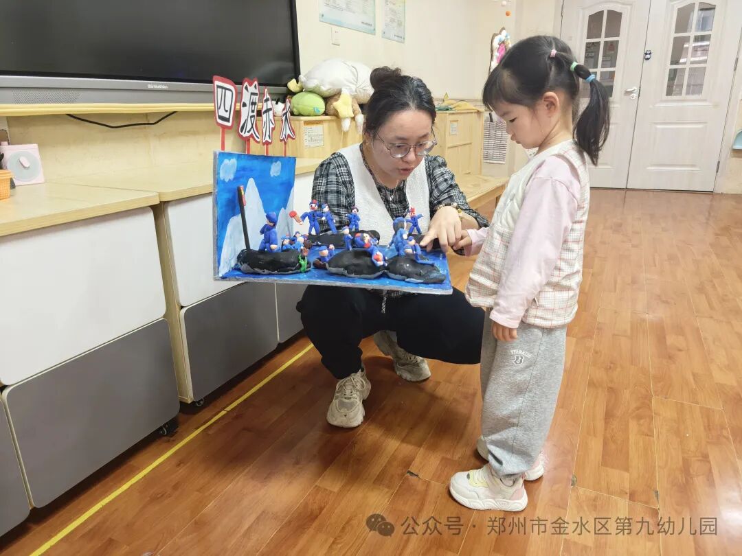大班的哥哥姐姐们带着做好的“红色故事”轻泥作品,来到小班,给弟弟妹妹们讲述红军的故事。