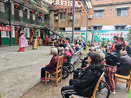 与此同时,康寿馨养老院里丝竹悠扬,戏曲专场演出温情开演。实践站特邀专业演员带来《穆桂英挂帅》《天仙配》等经典选段,演员们字正腔圆的唱腔、生动传神的表演,让老人们看得入迷,不时跟着节奏拍手叫好。演出间隙,志愿者陪行动不便的老人唠家常,详细询问生活需求,养老院里满是温馨气息。