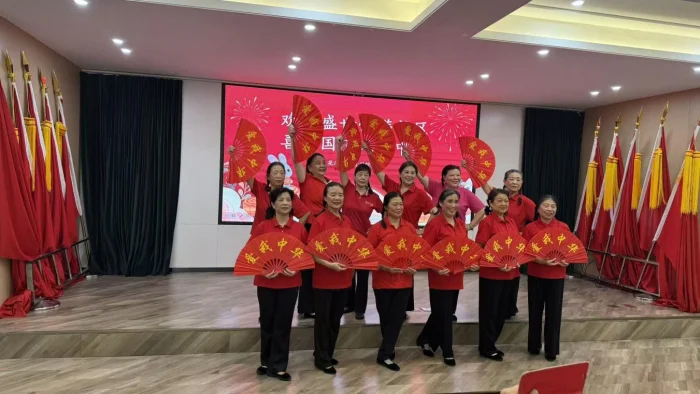 全体职工以饱满的精神状态完成跑步集合、队列训练等基础科目后,在教练指导下齐心协力,用整齐的队列拼出“国庆快乐”巨型图案,鲜红的旗帜与嘹亮的口号交织,将爱国情怀与集体荣誉感深深镌刻在每一位参与者心中。