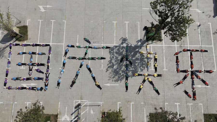 随后,“阶梯鼓掌”“独轮车接力”“跳大绳”“搭鞋塔”“翻魔毯”“拱桥搭建”等一系列高协作性项目依次开展。
