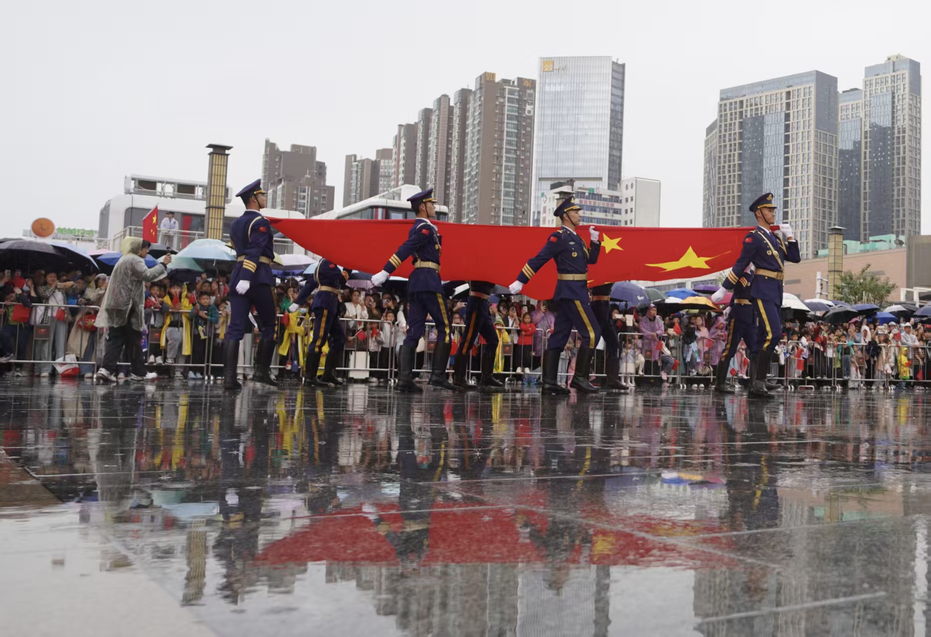 歌声渐息,热情未减。细雨中,那抹高扬的红色之下,是无数道炽热的目光与不变的坚定信念。一份深沉的家国情怀,在此刻定格,汇聚成对盛世华夏最真挚的礼赞。