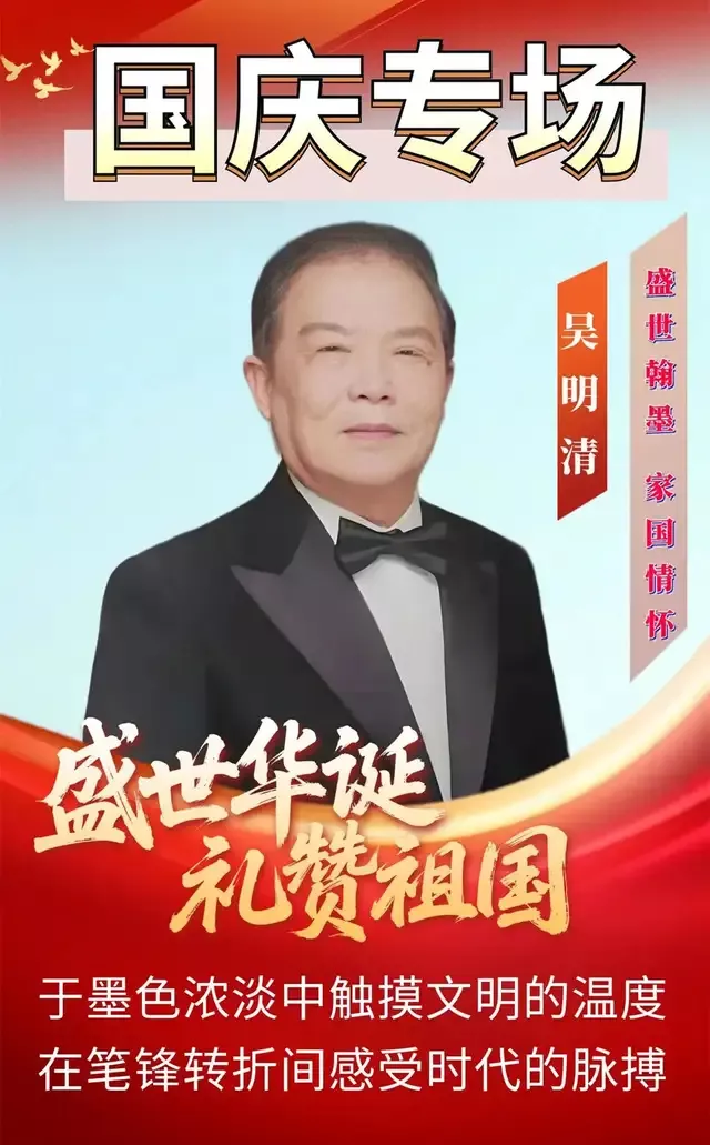 值此祖国欢庆之时,“墨染中华 艺承古今 ——吴明清书画名家国庆专场” 如期启幕,以笔墨为礼,致敬时代。