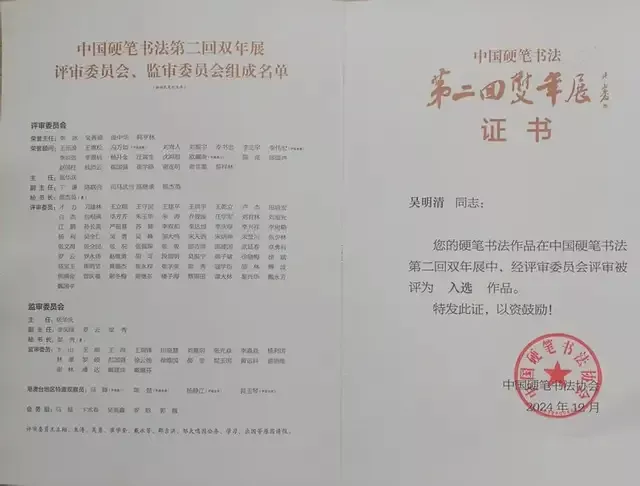 吴明清,重庆市万州区高峰人。曾任过小学中学校长,县教育局副局长。县委宣传部干事, 县委办副主任,移民局局长党组书记。自幼酷爱书法,墨海耕耘五十年。八十年代初,进入全国首所书法艺专,师从刘海粟、林散之、洪丕谟大师,全科攻读书法艺术。后又拜师于名师周漫白、蔡华义、郑永松学艺,受益匪浅。历任巫溪县书协主席、五桥区书协主席、 万州区书协理事。县、区、市书法家协会会员。人民书画院重庆分院秘书长,万州区老干部书画院副院长。区、市老年书画研究会会员。中国国际书画研究会会员,中国文化艺术城特聘高级书画师。数十次参与国内外书法赛事活动并获奖,培训书法学生数百人。