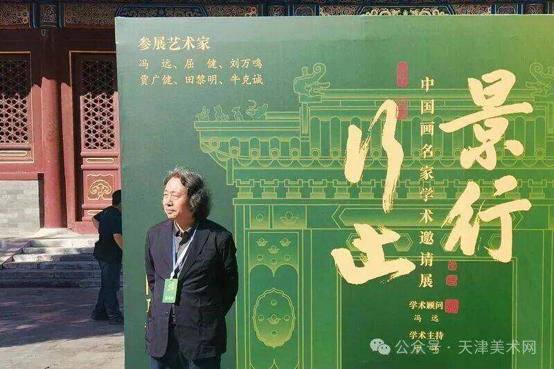 贾广健先生在景山公园观德殿画展展牌前