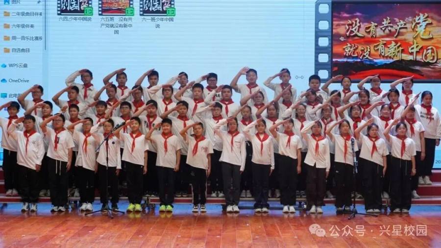 本次红歌展以“红领巾心向党,红歌伴成长”为核心主题,各中队围绕经典红歌精心编排。少先队员身着整洁校服,系着鲜艳红领巾,用清脆童声演绎《我们是共产主义接班人》,稚嫩却认真的模样尽显对祖国的热爱;有的班级则创新形式,有的加入队列变换,有的搭配小红旗道具,将《半生雪》《少年中国说》《少年有志》等曲目唱出独特韵味。