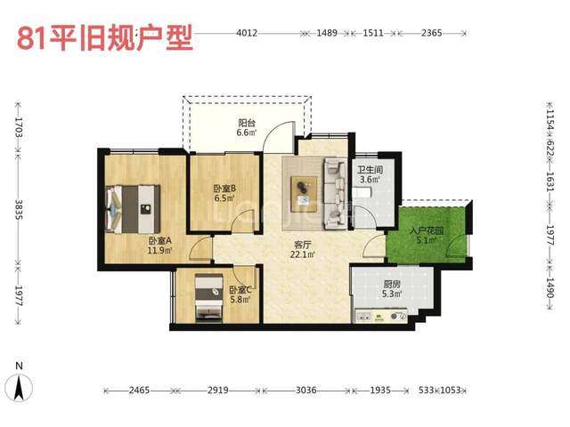 我们可以与市面上常见的80多的旧规户型相比。