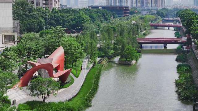 口袋公园星罗棋布遍地开花,绿意和湖景交相辉映。