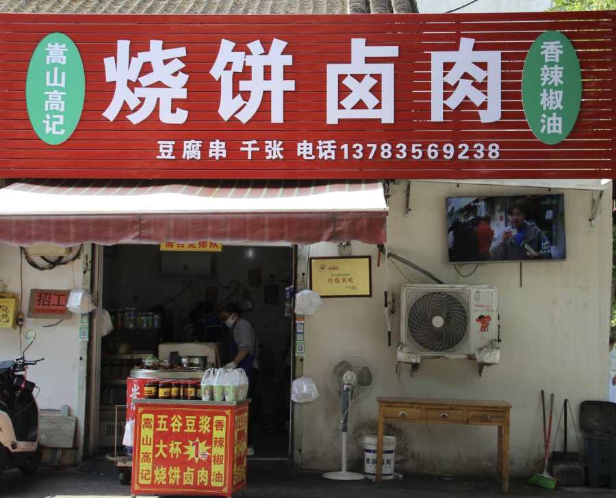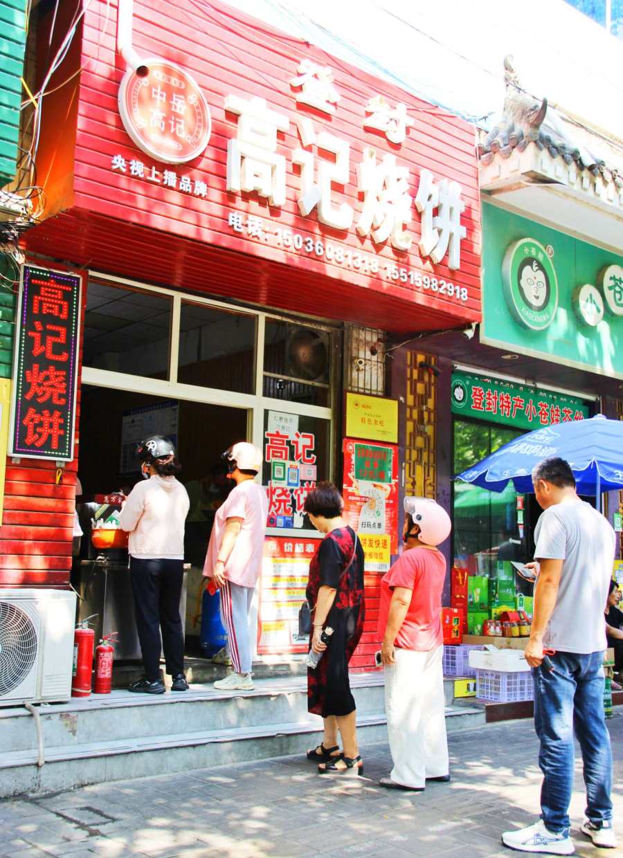 热汤的“黄金搭档”当属刚出炉的烧饼。孙师傅焦盖烧饼、中岳高记烧饼、嵩山高记烧饼、刘家烧饼等本土老店前,早早排起了长队。金黄焦脆的烧饼掰开,夹上卤香四溢的豆腐串与嫩滑鸡蛋,再配一碗热汤或清甜豆浆,简单的组合里满是烟火温情,游客们捧着热气腾腾的早餐,在香气中读懂了登封清晨的柔软。