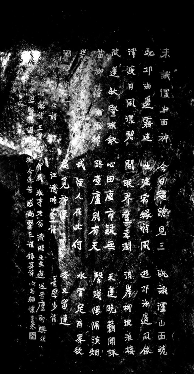 碑文内容除了三首诗,左边还有一段竖跋云:“ 右恭录唱和诗三首乃丁卯岁敬亭老翁、济时先生邂逅壶庐时即兴之作,今裔老、汪老恩师相继仙逝, 抚今追昔感慨系之。谨录其诗以志缅怀!辛巳冬”。