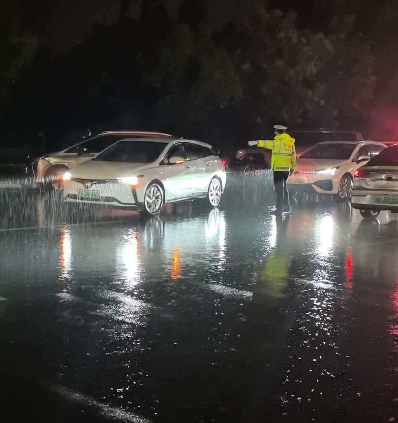 在只有河南景区,前来游玩的车辆较多,执勤交警站在雨中指挥交通,手势标准,哨音不断,动作不停,俨然成为这个假日里最美丽的风景。晚上9点多钟,大雨下的正酣,此时也是剧场结束游客车辆归途的时刻,为确保不发生交通拥堵,执勤交警站在滂沱大雨中,任凭雨水的浇灌仍一丝不苟的指挥交通,响亮的哨声仿佛雨中在跳动的音符,此起彼伏,刺破远方这寂寥的夜空,悦耳又动听,直到安全送走最后一波游客才停止。
