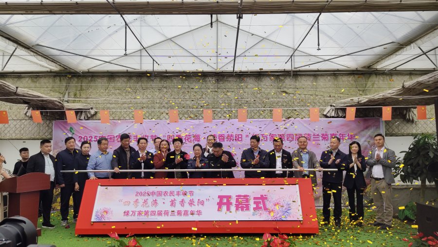 金秋送爽,菊香满溢。近日,2025中国农民丰收节“四季花海·菊香荥阳”绿万家第四届荷兰菊嘉年华在荥阳市高村乡绿万家园艺有限公司隆重开幕。本次活动由荥阳市文化广电旅游体育局、荥阳市农业农村局、荥阳市高村乡人民政府联合主办,郑州绿万家园艺有限公司承办,以菊花为媒,以丰收为主题,为现场嘉宾与游客呈现了一场融合农事文化、花卉观赏与互动体验的乡村盛会。