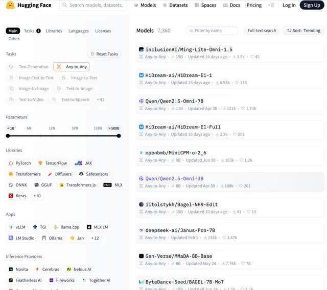 而这种生态优势,也正在转化为全球影响力。据Hugging Face最新数据显示,中文开源模型的fork量在9月增长180%。9月Hugging Face榜单显示,阿里通义7款模型占据全球前十开源模型席位,Qwen3-Omni 登顶榜首,标志着中国从“开源参与者”升级为“生态定义者”。
