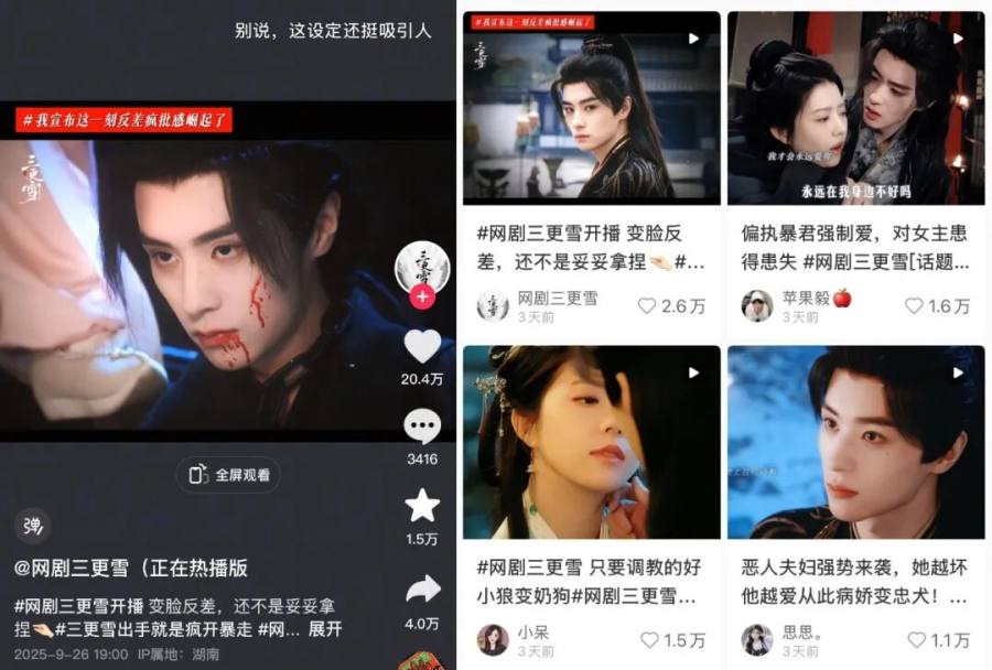 最近,由风芒出品、壹吉文化制作,周九钦执导的《三更雪》,为女频短剧带来了久违的讨论度与新鲜感。