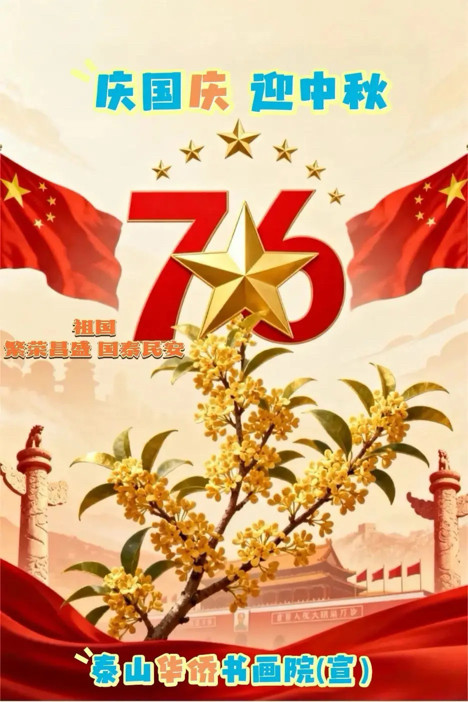 金秋十月,丹桂飘香,国庆与中秋的喜庆气息弥漫在每一寸空气中。值此中华人民共和国成立76周年华诞之际,双节同庆的美好时刻,泰山华侨书画院艺术顾问刘俊京、名誉院长王建勋、院长薛文明等代表泰山华侨书画院,向大家致以最热烈的节日祝贺和最诚挚的问候!
